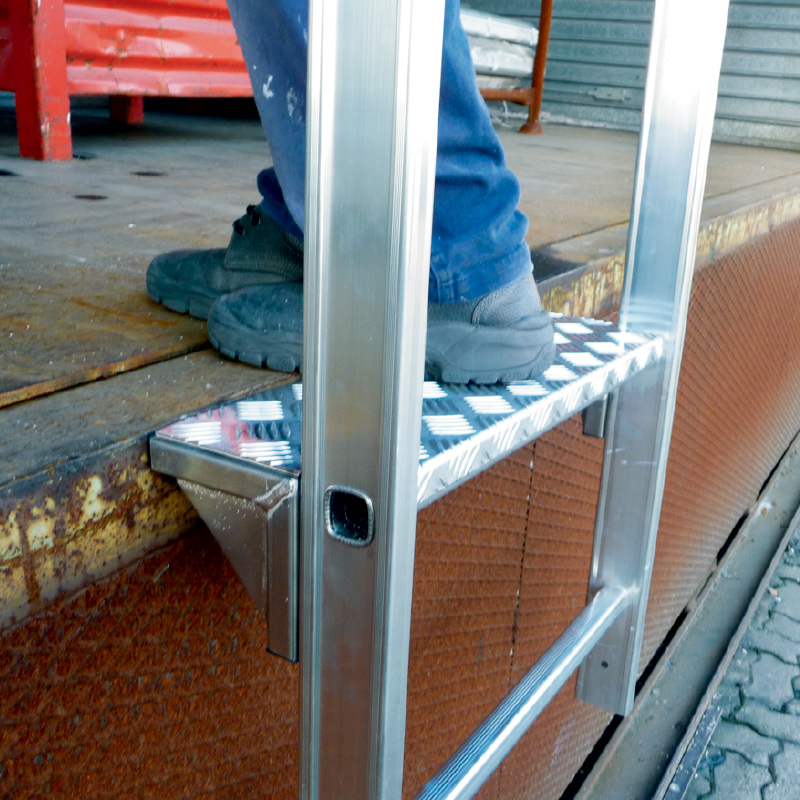 gradinoduscita ← Precedente Successivo → Gradino di uscita . In alluminio da mm 150 permette di sbarcare ancor più in sicurezza per non avere il vuoto tra scala e muro cod. A54GRA