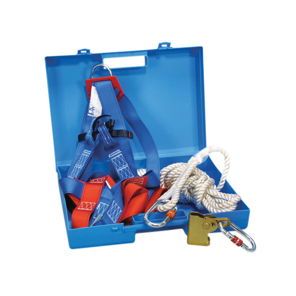 P58-P22_81-A1 ← Precedente Successivo → Fall protection set with polyester briefcase mm 432x315x110containing: N° 1 Safety belt with suspenders and thigh strap 1 Retracting fall protection